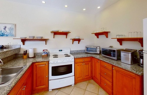 Though the beach and local hiking trails will be calling your name from the moment the sun comes up, you can stay right at home base and soak up sweet sunshine in the private infinity pool or simply tan in peace on the sun deck with a good book in hand. Whip up favorite cocktails at the outdoor wet bar and reminisce with loved ones under the vibrant colors of the sunset. When everyone has worked up an appetite, head inside and hop into the fully equipped kitchen boasting a coffee maker, air fryer, toaster oven, electric stove, and ample cookware to whip up your favorite meals with ease. Don't worry about being disconnected during your stay either, as high-speed WiFi is available for remote work and streaming favorite shows.