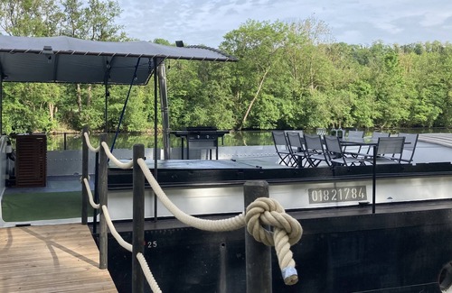 Close to the riverside, a golf course, and more, this welcoming houseboat brings it all within reach. Thanks to the convenient onsite parking, you can either leave your vehicle behind and enjoy a short 5-minute walk to Oise-Pays de France Regional Natural Park, or easily tackle the 26-minute drive to Parc Astérix. If you're looking to expand your horizons and see other nearby locales, you can catch a train at Chantilly Saint-Leu-d'Esserent Station, a short 8-minute walk away.