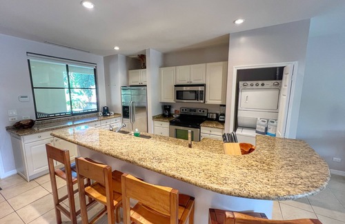 Offrez-vous une journée 100 % plaisir sur une plage nichée à deux pas de là, savourez une pause bienfaisante avec une piscine collective ou sirotez un cocktail dans un bain à remous. Vous profiterez ainsi pleinement de cet appartement en copropriété de 128 m² qui offre une terrasse ou un patio. Une fois rentré de vos explorations, profitez des joies de l'intérieur : Wi-Fi gratuit et télévision avec chaînes par câble ou par satellite.