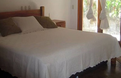 The East Guest Bedroom of Jim's Beach House has a king size bed and a patio with a comfortable hammock just outside. There is also a large couch in this room that pulls out into a queen-size pull out futon bed if needed. There is a bathroom attached to this bedroom with a large walk in shower toilet and sink.