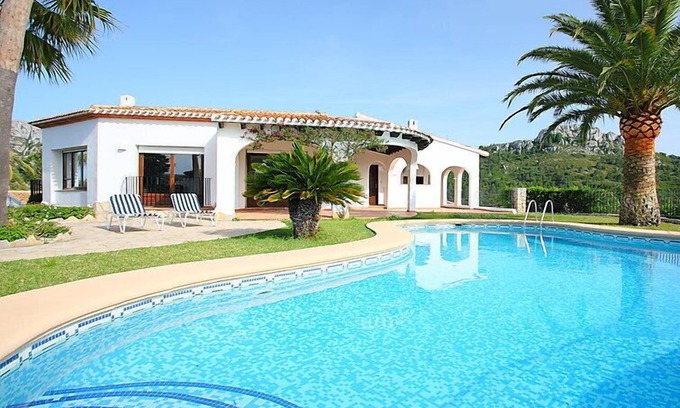 Belle villa accueillante "Paraje De Libertad". Dans le quartier de Monte Pego, situation tranquille, ensoleillée sur une colline, à 8 km de la mer, dans une impasse. A usage privé: grand, beau jardin entretenu (clôturé) avec pelouse 3'500 m2 fleurs, piscine à l'abri des regards (5 x 10 m, disponibilité saisonnière: 01.Jan. - 31.Dec.) avec marches intérieures. Douche extérieure. Infrastructures de la Maison: chauffage central. Sentier en escalier (22 marches) jusqu'à la maison. Place de parking sur le terrain. Magasins 5 km, supermarché 5 km, centre commercial 12 km, restaurant 1 km, café 500 m, arrêt du bus 9 km, plage de sable 8 km. Terrain de golf (18 trous) 12 km, tennis 1 km. Le propriétaire n'accepte pas les groupes de jeunes.