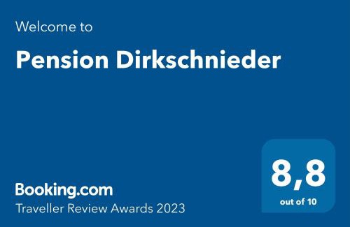 L'heure d'arrivée à Pension Dirkschnieder commence à compter à partir de 3:00 PM et le départ se fait jusqu'à 10:00 AM. Cependant, une arrivée anticipée ou un départ tardif peut parfois être négociée entre l'invitation et le propriétaire ou le gestionnaire de cet établissement.
