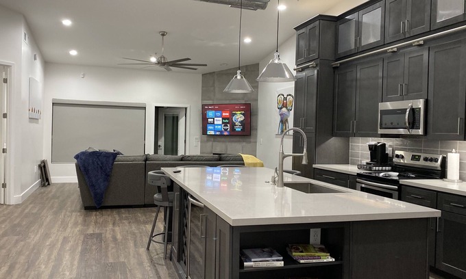 Le condo est situé dans un immeuble sécurisé et privé de 24 unités avec stationnement souterrain et sécurité. Le grand ascenseur dans le garage vous élèvera au 4ème étage. Entrez dans un plancher maintenant entièrement ouvert avec des plafonds de 13 pieds de haut. Il y a une grande cuisine avec un îlot massif avec réfrigérateur à vin et armoires personnalisées du sol au plafond. Faites fondre sur le sectionnel surdimensionné et rempli de duvet pendant que vous regardez votre émission Netflix préférée sur le téléviseur 65 pouces monté directement au-dessus du foyer au gaz pour ces nuits fraîches du désert. Profitez de la vue sur la ville et la montagne de l'intérieur du condo ainsi que du balcon privé. Il y a une grande suite parentale avec lit king size et une autre télévision de 65 pouces. Derrière la porte coulissante de la grange se trouve une double vanité, un immense placard principal avec des tonnes de rangement, des armoires personnalisées avec tiroirs et un miroir pleine longueur. Les toilettes privées ont une douche à l'italienne spacieuse avec plusieurs niches, un grand banc et 3 pommes de douche à effet pluie différentes, dont l'une est amovible. La chambre d'hôtes dispose d'un lit king-size, d'une télévision de 55 pouces et d'un grand dressing. Le bain d'invité est juste à côté et il dispose également d'une douche, d'une baignoire et de plusieurs niches, avec plus de pommes de douche à effet pluie. Pour votre commodité, il y a une laveuse et une sécheuse pleine grandeur à l'intérieur du condo. Ce condo est à distance de marche de Whole Foods, Trader Joe's, LA Fitness, Lifetime Fitness, de renommée mondiale Biltmore Fashion Square, ainsi que de nombreux autres magasins et restaurants haut de gamme. À une courte distance en voiture de Phoenix Sky Harbor, de l'ASU, de Scottsdale, du centre-ville de Phoenix, des jeux d'entraînement du printemps, du Phoenix Open, de Barrett Jackson, des événements du printemps et des vacances d'automne, ce condo est situé près de tout! Venez rester avec nous pour votre escapade parfaite dans le désert!