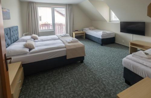 Situé dans le village de Veľká Lomnica, le Penzion Rysy propose des chambres avec vue sur la montagne, à 5 minutes de route de la station de ski de Tatranska Lomnica. Vous pourrez profiter d'un salon commun avec un coin salon et une cheminée. Vous trouverez également un petit café sur place. Les chambres du Rysy sont toutes équipées d'une télévision par satellite, d'un coin salon et d'une salle de bains avec douche ou baignoire. Elles possèdent un balcon ou une terrasse. Le Penzion Rysy est entouré d'un jardin avec une terrasse, une aire de jeux pour enfants et un barbecue. Un local à skis est également disponible. Des places de stationnement privées sont disponibles gratuitement sur place. Le parcours de golf Stork se trouve à 800 mètres et l'arrêt de bus le plus proche est accessible en moins de 3 minutes à pied. Le parc aquatique AquaCity Poprad est à 8 km.
