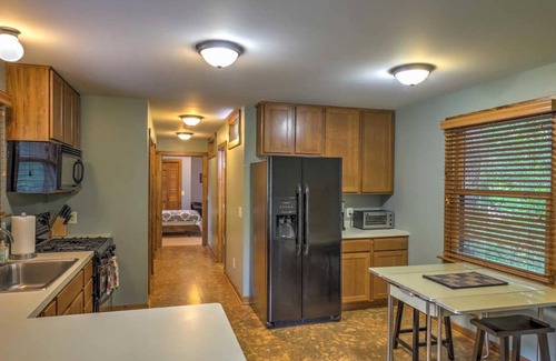 Cette maison isolée PET FRIENDLY est alimentée par notre ferme solaire et surplombe M. Étang Waddles. Vous découvrirez l'attrait de la vie durable tout en profitant d'équipements haut de gamme, d'un mobilier confortable et d'un paradis boisé juste devant la porte d'entrée. Des arbres imposants, un escalier extérieur en colimaçon et de charmantes mangeoires à oiseaux vous accueillent. Installez-vous et installez-vous confortablement dans le salon confortable, équipé de 1 des 4 téléviseurs intelligents à écran plat avec 120 Mo de fibre optique Wifi. La cuisine entièrement équipée comprend une table à manger et un bar pour le petit-déjeuner. Rafraîchissez-vous sous l'eau tiède chauffée par le soleil dans l'une des 2 salles de bain complètes immaculées, y compris des serviettes moelleuses et des savons écologiques. Pour le repos et le rajeunissement, 4 matelas moelleux avec des draps de luxe, peuvent accueillir confortablement 5-6 personnes. La chambre privée au deuxième étage peut être aménagée avec 2 lits jumeaux ou 1 lit king-size. La chambre de l'espace commun a un lit queen. Le coin salon dispose d'un canapé-lit double. La chambre du rez-de-chaussée a un lit double et une porte d'entrée qui mène au pont arrière et à la rampe d'accès pour handicapés. Le pont sur le devant de la maison a un escalier en colimaçon jusqu'au balcon du deuxième étage. Tout près de la maison, il y a un pavillon couvert avec des barbecues au charbon et une table de pique-nique. Depuis le patio, profitez d'une vue imprenable sur l'étang de canard privé et les collines boisées. Promenez-vous sur la promenade pendant que vous serpentez à travers des sentiers luxuriants sous des auvents d'arbres imposants et à côté de parterres de fleurs lumineux et fleuris.