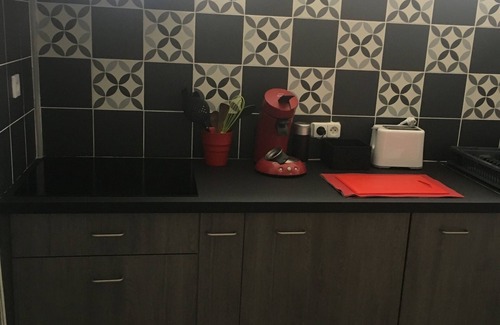 cuisine séparée (plaques vitrocéramiques , vaisselle, cafetière filtre et senséo,bouilloire ,combi frigo congélateur,micro ondes appareil à raclette…)