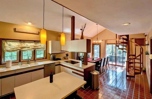 Un barbecue, une cheminée et la climatisation équipent également cette location avec 3 chambres et 2 salles de bain. Préparez un bon petit plat maison dans la cuisine équipée de tout le nécessaire : un four, une plaque de cuisson et un réfrigérateur, mais aussi une cafetière, un micro-ondes et des ustensiles de cuisine. Et grâce à la machine à laver et au sèche-linge, vous pourrez même voyager léger.
