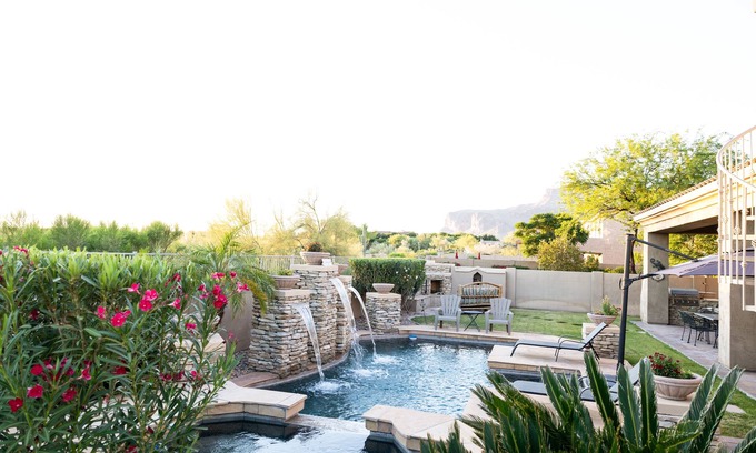Les meilleurs tarifs pour Gold Canyon maison commencent à partir de $756 par nuit et comprennen Divertissement, Climatiseur, Piscine, Piscine privée, Activités sportives, Barbecue/Cuisine en plein air, Jacuzzi, Internet, Parking, Balcon/Terrasse, Sécurité sureté, Foyer/Chauffage, Adapté aux enfants, Cuisine, Blanchisserie, La télé, Literie/Linge de maison, Installations de bien-être avec toutes les autres installations. MLFR correspond à chaque voyageur avec son hébergement parfait, que vous voyagiez avec un groupe, des amis, une famille ou des animaux de compagnie.