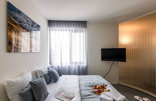 But the delights don't end there – step outside onto your private terrace, a tranquil oasis amidst the city bustle. Here, you can savor your morning coffee, bask in the afternoon sun, or unwind with a glass of wine under the stars. The terrace is your personal haven, a place to escape and find serenity in the heart of the city.