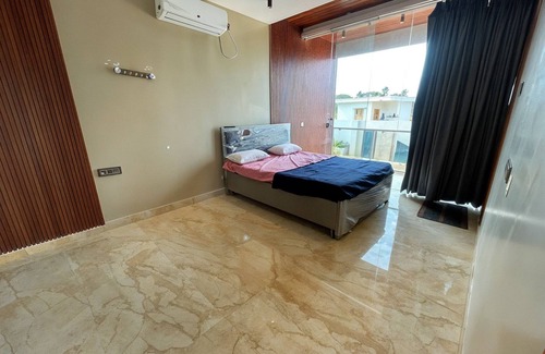 Step outside to your private oasis. Dive into the 40x25 ft pool, relax on loungers or floaters, and enjoy evening tea in the beautifully lit 1000 sq ft garden with seating for 25 guests. Children have their own play area, and there’s an outdoor shower for convenience after swimming. Fire up the complimentary barbecue kit and savor outdoor grilling under the open sky.