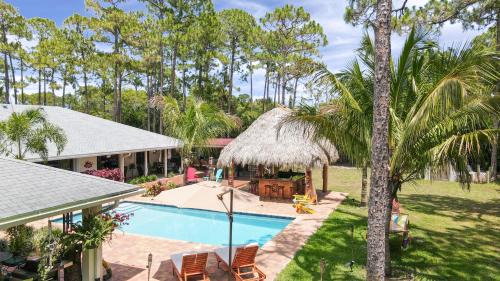 Bénéficiant d'un hébergement climatisé avec une piscine privée, le Private Tropical Paradise Guesthouse! est situé à Loxahatchee. L'établissement se trouve à environ 23 km du parc aquatique Rapids, à 28 km du centre commercial Gulfstream et à 29 km du Palm Beach Kennel Club. Vous profiterez gratuitement d'une connexion Wi-Fi et d'un parking privé. Cette maison de vacances spacieuse comprend 2 chambres, 2 salles de bains, du linge de lit, des serviettes, une télévision à écran plat avec services de streaming, un coin repas, une cuisine entièrement équipée et une terrasse avec vue sur le jardin. Cet établissement est non-fumeurs. Pour les moments où vous préférez ne pas dîner dehors, vous pouvez choisir de cuisiner sur le barbecue. La maison de vacances dispose d'une cheminée extérieure et d'une aire de pique-nique. Vous séjournerez à 29 km du port de Palm Beach et à 34 km du centre de conventions du comté de Palm Beach. L'aéroport international de Palm Beach, le plus proche, est implanté à 26 km.