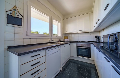 The home is modernly furnished and equipped with all conveniences, such as an LCD TV and free Wi-Fi. You do not do the dishes yourself, you leave that to the dishwasher.