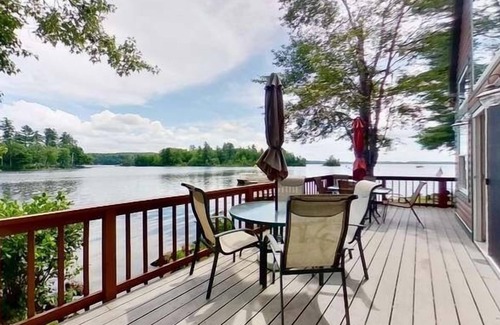 This lakehouse is located on a private point on the Cobbossee Lake with impressive lake views stretching 9 miles! The lake is nationally recognized as one of the top bass-fishing lakes in America! This lovely home has an open concept floor plan with high ceilings and large windows. The sunrise and sunset will not dissapoint! The first floor has a nice large kitchen, two bedrooms, each one with a queen sized bed, a full bath, and a washing machine and dryer. The second floor overlooks the first floor and has three twin sized beds, a full sized futon, and a half bathroom. The house has a wrap around deck perfect for grilling and entertaining! If you own a boat, bring that too because we have a dock! The public ramp is nearby and the Lakeshore Marina is steps away to fuel up your boat. The lakehouse is also conveniently located near many supermarkets, shopping centers, and restaurants. We are not far from downtown Winthrop, Hallowell, Manchester, and Augusta. Come and enjoy this magnificent property!