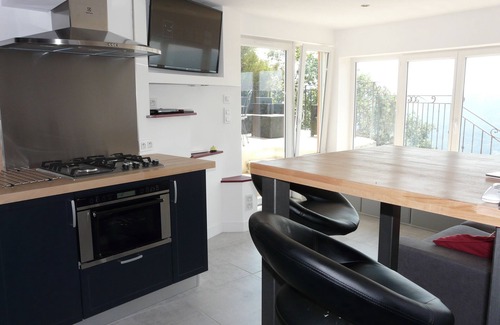 - cuisine entièrement équipée, réfrigérateur, four et micro-ondes, cafetière, grille-pain, bouilloire électrique, etc.