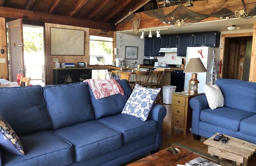 Cette maison dispose d'une spacieuse chambre principale avec lit king-size, d'un accès au pont et d'un réveil pour mourir pour une vue sur le port et l'océan. Il a également deux chambres avec une taille queen et deux lits jumeaux. Les trois chambres et la salle de bain complète entourent la grande salle chaleureuse et accueillante, avec ses grandes baies vitrées avec vue sur l’océan, son salon confortable, son coin repas et sa cuisine confortable.