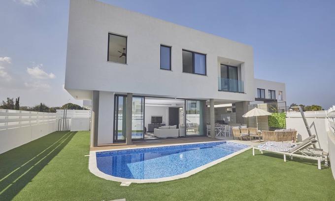 Protaras Almaria Villa ALM08 - a villa that sleeps 6 guests in 3 bedrooms is located in Pernera. Protaras Almaria Villa ALM08 - a villa that sleeps 6 guests in 3 bedrooms provides accommodation, featuring Climatiseur, Piscine privée, Installations de bien-être, among other amenities. This Cottage features Climatiseur, Piscine privée, Installations de bien-être, to make your stay a comfortable one.