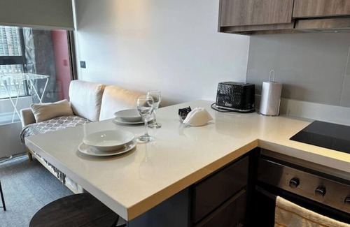 Cet appartement avec 1 chambre et 1 salle de bain à Pucón est la solution parfaite pour explorer les environs en toute simplicité. Les amoureux de la nature et du grand air seront ravis de loger à 5 minutes à pied de Cascades du Rio Turbio et à 4 minutes en voiture de Lac Villarrica. Laissez-vous porter par vos pieds pour une balade de 13 minutes jusqu'à Les Pozones, et si vous souhaitez prendre la voiture, le trajet ne dure que 8 minutes jusqu'à Plage de Pucón.