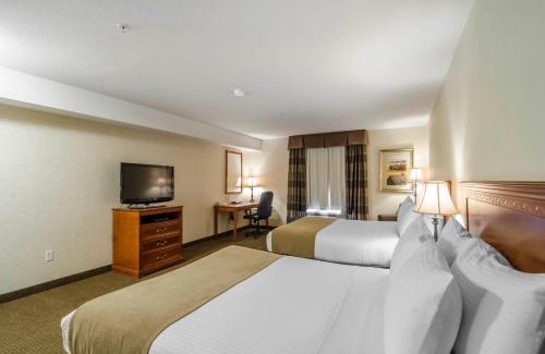 Situé à Grande Prairie, l’établissement Quality Inn & Suites comprend un barbecue. Cet hôtel 3 étoiles propose une salle de sport ainsi que des hébergements dotés de la climatisation, d’une connexion Wi-Fi gratuite et d’une salle de bains privative. Cet hôtel propose une piscine intérieure, un bain à remous et un salon commun. Tous les hébergements comprennent une armoire. Vous bénéficierez d'un bureau et d’une télévision à écran plat. Certains hébergements comprennent une terrasse. Des serviettes et du linge de lit sont fournis. L’établissement Quality Inn & Suites sert un petit-déjeuner buffet ou continental. Le personnel de la réception parle anglais, espagnol, français et tagalog. L'aéroport le plus proche (Aéroport de Grande-Prairie) est à 8 km.
