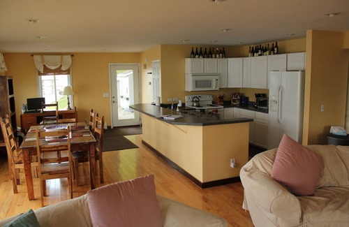 Le niveau principal offre un vaste espace de vie à concept ouvert avec une cuisine moderne entièrement équipée et une vue panoramique sur le lac. Cette maison toute l'année comprend tous les équipements modernes, y compris laveuse, sécheuse, lave-vaisselle, télévision grand écran, Internet, wifi, climatisation et un refroidisseur de vin de quatre bouteilles. La maison comprend également un poêle à granulés de bois, un gril à gaz extérieur (aucun réservoir n'est nécessaire), un foyer extérieur, une gamme de meubles d'extérieur pour des dîners «sur l'eau» sur le quai et bien plus encore. Pour les passionnés de train, il existe même parfois un train de fret réel (ne comptant généralement pas plus de 8 voitures) qui roule à travers la propriété à environ 5 mi / h plusieurs fois par semaine.