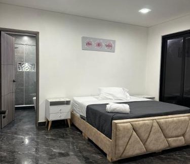 Situé à Guaduas, l’hébergement Quinta Emmanuel propose une piscine extérieure. Cette maison de vacances possède une piscine privée, un jardin, un barbecue, un parking privé gratuit et une connexion Wi-Fi gratuite. Disposant d’une terrasse et offrant une vue sur la montagne, cette maison de vacances comprend 3 chambres, un salon, une télévision à écran plat, une cuisine équipée avec un réfrigérateur et un micro-ondes, ainsi que 2 salles de bains avec une douche. Des serviettes et du linge de lit sont disponibles. Parlant anglais et espagnol, le personnel de la réception se fera un plaisir de vous renseigner à toute heure de la journée. Vous pourrez jouer au ping-pong sur place, et pratiquer le vélo dans les environs. L'aéroport le plus proche (Aéroport international El Dorado) est à 111 km. Un service de navette aéroport payant peut être assuré par l’établissement.