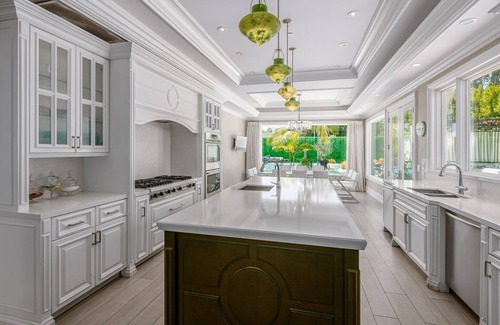 Cette villa traditionnelle de Beverly Hills dispose de 6 chambres et de 6 salles de bains. Toutes les chambres sont luxueusement meublées avec qualité. Les salles de bains sont ornées de marbres, de miroirs et de lustres.