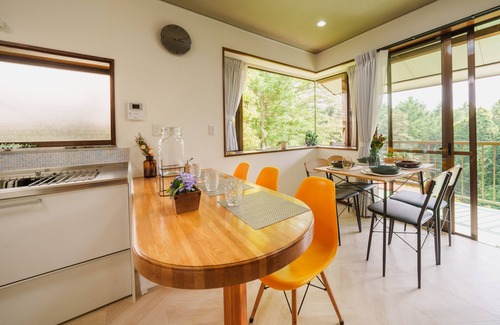 Cette maison de vacances au charme incontestable à Étangs Oshino est la solution idéale pour explorer les environs en toute simplicité. Grâce au parking couvert de l'hébergement, vous pourrez aisément faire le trajet de 5 minutes jusqu'à Parc de loisirs Fuji-Q Highland ou de 5 minutes jusqu'à Étangs Oshino Hakkai.
