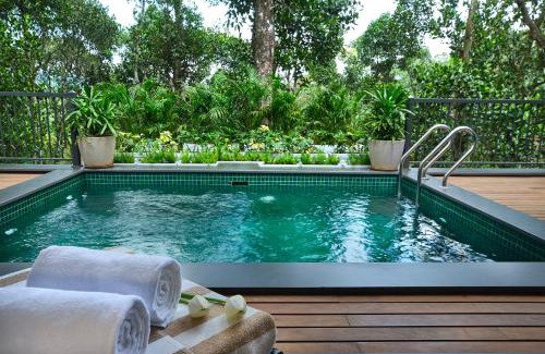 Proposant une piscine, un jardin, un salon commun et connexion Wi-Fi gratuite, l’établissement Reen Resorts Aanavilasam Plantation Thekkady se trouve à Thekkady et offre une vue sur le jardin. Les hébergements sont dotés d’un balcon, de la climatisation et d’une télévision à écran plat. Leur salle de bains privative comprend une douche et des articles de toilette gratuits. Un minibar et une bouilloire sont également disponibles. Un petit-déjeuner à la carte, continental ou halal est servi sur place. Sur place, vous pourrez profiter d’un restaurant qui propose de nombreux plats asiatiques, ainsi que des options halal. Un service de location de voitures est assuré sur place. L'aéroport le plus proche (Aéroport international de Cochin) est à 138 km.