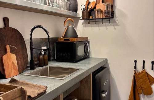This 1-bedroom, 1-bathroom rental features a BBQ grill, a fireplace, air conditioning, and local meal delivery service. Bathroom amenities include a hair dryer, towels, and toilet paper. The kitchenette is equipped with a refrigerator, as well as a coffee maker, an electric kettle, and a lobster pot.