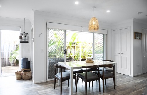 This contemporary and homely beach style townhome is set in a quiet neighbourhood just a one minute stroll to the stunning riverside. The property offers spacious living areas bathed in natural light and features a beautiful covered alfresco space complete with BBQ and hammock surrounded by lush gardens.