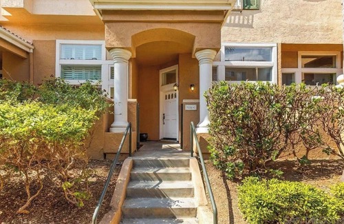 Your cozy getaway awaits in San Diego at this superb townhome. With 2 king bedrooms and 3 bathrooms featuring a bathtub and shower, this tremendous property offers a peaceful retreat for guests. Relax in the living room with a sofa bed for additional space. Enjoy your time in San Diego at our townhome. Experience resort-style living in this beautifully remodeled home located in the coveted Avanti community at the heart of the Renaissance La Jolla enclave. Flooded with natural light, this sun-drenched residence showcases soaring ceilings, rich hardwood flooring, and a neutral designer palette that complements its timeless elegance. The expansive family room features dramatic vaulted ceilings, a cozy gas fireplace, and sliding glass doors that open to a serene private patio—ideal for relaxing or entertaining. The gourmet kitchen has been thoughtfully reimagined with sleek new cabinetry, gleaming quartz countertops, and premium stainless steel appliances, seamlessly connecting to a bright breakfast area, inviting living space, and sunlit balcony. Upstairs, you'll find two generously sized en-suite bedrooms, each offering oversized closets and spa-inspired baths, including a luxurious soaking tub in the primary suite. A skylit hallway houses a full-size washer and dryer for added convenience. Additional highlights include central air and heat, shutters, an attached two-car garage with an epoxy-finished floor and ample built-in storage, plus abundant guest parking within the community. Avanti’s lush, park-like setting is adorned with tranquil fountains, meandering pathways, and resort-caliber amenities including a sparkling pool. Ideally situated just minutes from La Jolla Shores, UCSD, Torrey Pines, premier shopping, dining, and major freeways—this is coastal living at its finest.