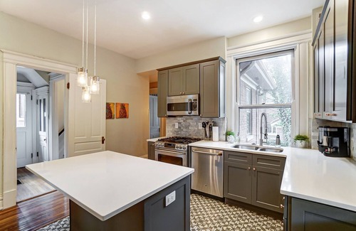 Ce morceau d’histoire est conçu pour accueillir et divertir petits et grands groupes de 6 à 26 personnes. La configuration comprend 6 lits king size, un espace salle à manger pouvant accueillir 22 personnes et un canapé personnalisé en forme de U pouvant accueillir 16 à 20 personnes, idéal pour passer du bon temps! Cette maison est située dans un vieux quartier historique avec des rues bordées d'arbres et dispose également de toutes les commodités de la ville. Une somme de 5 $ vous mènera le plus loin de chez vous. Venez découvrir le charme et l'élégance de cette maison de briques d'environ 1905 rénovée avec une nouvelle cuisine gastronomique, de magnifiques boiseries, des portes escamotables, un garde-manger, une cheminée et plus encore.