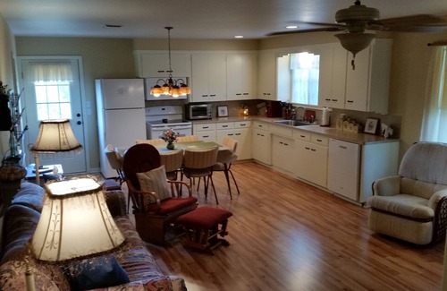 Le Kardinal Kabin a été restauré avec amour avec des touches d'autrefois en incluant du bois provenant d'une maison de colons allemands d'origine. Vous pouvez regarder à travers le pré où il était initialement placé. Il a une véranda confortable et des chaises berçantes pour voir la campagne. Une cuisine complète, une salle à manger et un salon accueillent nos invités à leur entrée. Nous avons WiFi disponible et des commodités modernes dans notre maison de campagne. Le Kardinal Kabin dispose de 2 salles de bains et de 3 chambres, chacune avec un thème. Toutes les chambres ont des lits queen.