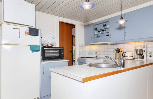Composition: cuisine(plaque de cuisson(électrique), cafetière/percolateur, four(mini), micro ondes, combinaison réfrigérateur/congélateur), living/chambre à coucher(TV(chaînes de télévision Danoises)), chambre(lit double), chambre(2x lit simple), chambre(2x Lit superposé, lit d'enfant, chaise haute), salle de bains(lavabo, douche, WC, lave-linge ), chauffage(électrique), terrasse, mobilier de jardin, transats, pompe à chaleur air/air