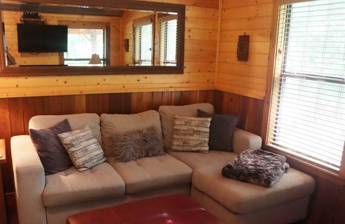 Big windows give the living room an open, airy feel. A convertable sleeper sofa allows additional sleeping for two. A smart TV with Satellite allows for group viewing of movies.