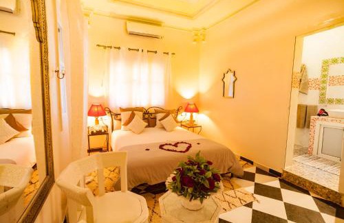 Nichée au cœur de la palmeraie de Zagora, cette maison d'hôtes abrite de nombreux salons avec cheminée, une piscine extérieure et une terrasse surplombant la plantation. Les chambres du Riad Dar Sofian sont équipées d'une connexion Wi-Fi gratuite et offrent une vue sur le jardin. Décorée dans des tons neutres, chaque chambre climatisée possède une salle de bains privative avec articles de toilette gratuits. Deux chambres disposent d'un toit-terrasse privé. Le petit-déjeuner continental est servi chaque matin dans la salle à manger ou dans le patio, doté d'un carrelage coloré. Le restaurant de l'hôtel vous proposera une cuisine marocaine préparée à partir de produits locaux frais, tandis que le bar vous servira une gamme de thés. Des balades à dos de chameau, des nuits de camp dans le désert et des excursions en 4x4 peuvent être organisées à la réception du Riad Dar Sofian, ouverte 24h/24. Un parking privé est également disponible gratuitement sur place.