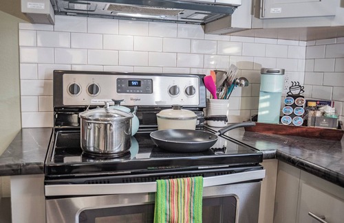 Un salon et la climatisation équipent également cette location avec 2 chambres et 1 salle de bain. Parmi les équipements de salle de bains, vous trouverez un sèche-cheveux et des serviettes. Préparez un bon petit plat maison dans la cuisine équipée de tout le nécessaire : un four, une plaque de cuisson et un réfrigérateur, mais aussi une cafetière, un distributeur de glaçons et un micro-ondes. Et grâce à la machine à laver et au sèche-linge, vous pourrez même vous permettre de voyager un peu plus léger.