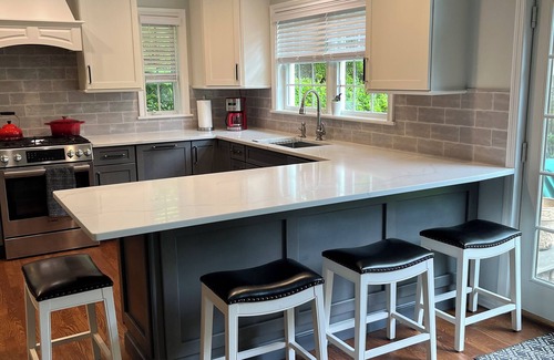 Escape to this newly renovated Cape Cod home in picturesque Merrick. The outside of our home is deceiving. Once you walk through the front door you enter into a beautifully decorated living room and a large formal dining room. Enjoy the well appointed kitchen and family room which provides a wonderful gathering place for a large group. The main king size bedroom is on the first floor with an en suite. Upstairs there are two bedrooms with queen beds that share a bath. There is also a small work area if needed. On the lower level, there is a bedroom with a queen size bed. Our backyard provides privacy, complete with BBQ, fire pit and ample seating. Camp chairs are provided so you will enjoy the Ryder Cup at Bethpage and the beach.