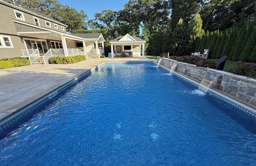 Escape to this marvelous house in picturesque Massapequa, less than 10 minutes away from Bethpage Black. This cozy retreat features a gorgeous yard with a cabana, deck, and in-ground pool. This home has an airy open-floor plan, 3 bedrooms with a king, queen, and full-size bed. Perfect for a family or small group. Enjoy the convenience of amenities in our fully-equipped kitchen. Our place will help you feel at home while you're traveling around Massapequa. Restaurants, supermarket, nutrition store (with healthy to-go meals & smoothie bar), pharmacy and nail salon are within walking distance. Conveniently situated in front of Bethpage bike trail which is perfect for walking, jogging or cycling .