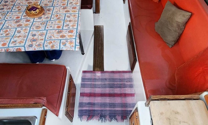 The cockpit in the stern can be utilized to catch nature and wildlife, especially in the early mornings and early evenings. Find a folding table in the cockpit as well for dining al fresco. The boat has limited power and only a flashlight for light.