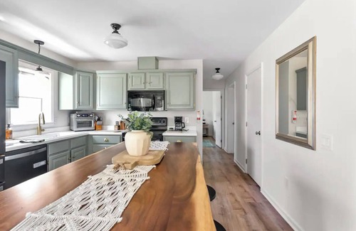 With 4 bedrooms including 1 king bed, 2 queen beds, and 1 full bed, there is plenty of space for everyone to relax and unwind. The 2 bathrooms are equipped with amenities such as a jetted bathtub and a hair dryer. Our place is equipped for both long or short stays to make your holiday one to remember.
