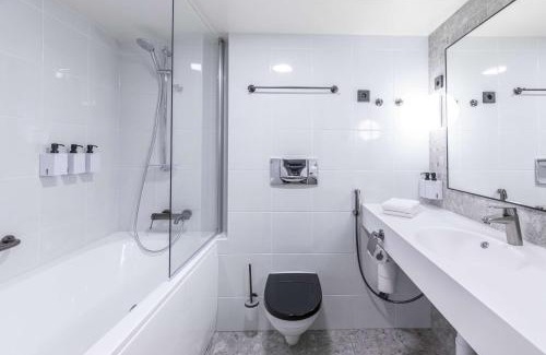 RestaurationMinibarSalle de bainsSèche-cheveux, Salle de bains privative, Papier toilette, Shampoing, Bidet, Serviettes, Savon, Douche, ToilettesGénéralInsonorisation, Climatisation, Matériel de repassage, Entrée privée, Coffre-fort, Détecteur de fumée, Fer à repasser, Carte d'accès, Chauffage, Poubelles, ParquetHigh-techTélévision à écran plat, Téléphone, TélévisionCoin salonBureauServicesService de réveilChambreArmoire ou penderie, Linge de maisonAccessibilitéAccessible par ascenseur, Étages supérieurs accessibles par ascenseurÉquipements en chambrePortant, Oreiller sans plumesCuisineVerres à vin |