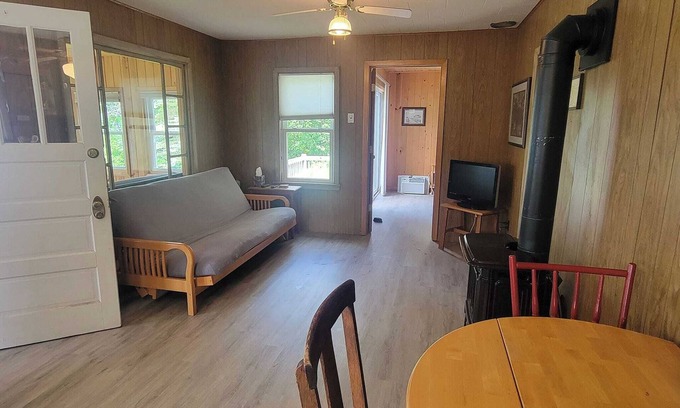 Secluded lakeside cabin, rustic charm, sleeps 6, 700' lakeshore, 10 acres is located in Dalton. Secluded lakeside cabin, rustic charm, sleeps 6, 700' lakeshore, 10 acres provides accommodation, featuring Climatiseur, Accessible aux fauteuils roulants, Accessibilité, among other amenities. This Cabine features Climatiseur, Accessible aux fauteuils roulants, Accessibilité, to make your stay a comfortable one.