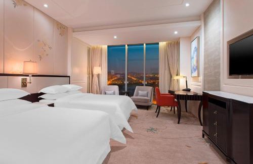Situé dans le quartier de Licang à Qingdao, le magnifique Sheraton Qingdao Licang Hotel se trouve à 20 minutes en voiture du parc national forestier de Laoshan. Une connexion Wi-Fi est disponible gratuitement dans l'ensemble de l'établissement. Les chambres modernes disposent de la climatisation, d'un bain à remous et d'un minibar. Le coin repas est pourvu d'un réfrigérateur et d'une bouilloire électrique. Dotée d'une baignoire et d'une douche, la salle de bains privative est également pourvue d'un sèche-cheveux. Certaines chambres offrent une vue sur le lac et les montagnes. Le Sheraton Qingdao Licang Hotel possède un restaurant buffet. Il met également à votre disposition une salle de réunion, un bureau d'excursions et assure des services de billetterie. Vous bénéficierez d'un stationnement gratuit sur place. L'hôtel se trouve à 8,5 km du musée municipal de Qingdao et à 8,6 km du musée des sciences et de la technologie de Haier. L'aéroport international de Qingdao-Liuting est à 12 km.