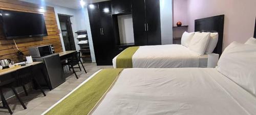 RestaurationPlateau / bouilloireSalle de bainsServiettes, Peignoir, Baignoire ou douche, Articles de toilette gratuits, Papier toilette, Salle de bains privative, Savon, Douche, Serviettes / linge de lit (frais supplémentaires), ToilettesHigh-techTélévision, Télévision à écran plat, Chaînes satelliteCuisineBouilloire électrique, Micro-ondes, RéfrigérateurCoin salonCoin salonGénéralVentilateur, Chambre(s) communicante(s) disponible(s), Entrée privée, Clé d'accès, Couvertures chauffantes, PoubellesEn extérieurPatio, Mobilier d’extérieurServicesAccès au salon exécutifChambreLinge de maison, Armoire ou penderieÉquipements en chambrePortant, Prise près du lit, Oreiller sans plumes |