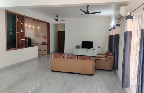 Proposant une terrasse, l’hébergement SK Nivas se trouve à Tirupati, à respectivement 38 km, 11 km et 200 mètres de ces lieux d’intérêt : Temple Srikalahasti, Gare de Renigunta Junction et Old Tirchanoor Road. Cette maison de vacances propose un parking privé gratuit, une réception ouverte 24h/24 et une connexion Wi-Fi gratuite. Cette maison de vacances avec climatisation se compose de 2 chambres, d'un salon, d'une cuisine entièrement équipée avec un réfrigérateur et une bouilloire, ainsi que de 2 salles de bains avec une douche et des articles de toilette gratuits. Une télévision à écran plat avec les chaînes du câble est disponible. Vous séjournerez à respectivement 1,3 km et 2,9 km de ces lieux d’intérêt : APSRTC Central Bus Station et Gare de Tirupati-Est. L'aéroport le plus proche (Aéroport de Tirupati) est à 13 km.
