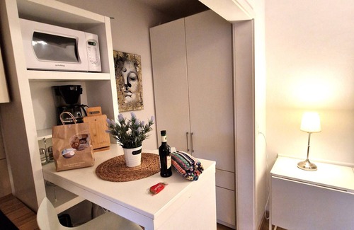 Dans la cuisine, vous trouverez une plaque de cuisson et un réfrigérateur, mais aussi une cafetière, un micro-ondes et des ustensiles de cuisine. Wi-Fi gratuit, télévision : vous ne manquerez de rien pour vous divertir lors de votre séjour.