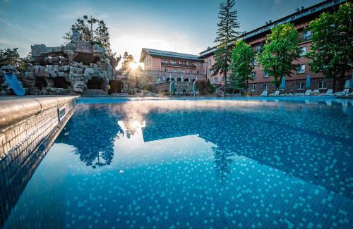 Spa Hotel Dvoretsa is an imposing 5-storey building in the centre of Velingrad, Bulgaria’s premier spa town. Free WiFi and free parking are provided. The hotel’s spa centre, which offers an exceptional and unique treatment programme by highly qualified therapists and medical specialists, is unique in Bulgaria. Spa Hotel Dvoretsa offers elegant and comfortable rooms. Each room features a TV with satellite channels, a minibar and an en-suite bathroom with free toiletries, a shower and a hairdryer. There are rooms for disabled guests. The hotel features a restaurant with summer garden, Italian restaurant Aria Freska and a lobby bar. An outdoor pool, open for guests all year round is available. A kids seasonal pool, kids open corner and inside kids corner with animation are also offered. Located in one of the city’s most beautiful parks, the hotel offers wonderful views of the surrounding mountains. The unique combination of a mild climate, healing mineral waters and a beautiful natural landscape makes Velingrad a popular tourist destination for recreation, treatment and relaxation. Kleptuza, the only karstic spring on the Balkan Peninsula, is 3 km away.