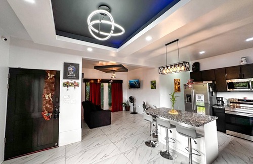 Cette maison de vacances avec 4 chambres et 2 salles de bain à Alajuela vous offre une expérience des plus complètes. Les amoureux de la nature et du grand air seront ravis de loger à 3 minutes en voiture de Juan Santamaría Park et à 3 minutes de Central Park. Stade Alejandro Morera Soto n'est qu'à 13 minutes de marche et si vous souhaitez prendre la voiture, le trajet ne dure que 4 minutes jusqu'à Centre commercial City Mall.