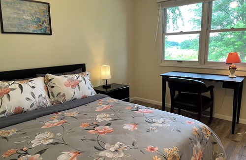 This spacious home comfortably sleeps up to 15 guests with 5 cozy bedrooms, including a first-floor bedroom and a luxurious master suite featuring a private sitting area and balcony. 3 extra sleeping pad and folding beds are available upon request. Enjoy the large carpeted basement with a pool table & Ping Pong table —perfect for family fun or a relaxing evening in. The living room features a smart TV for your entertainment.