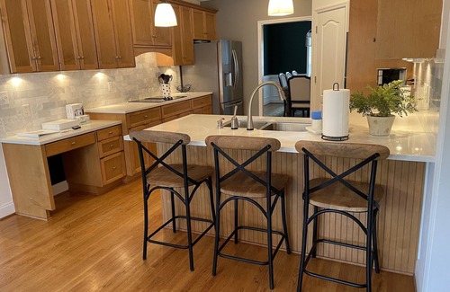 Un coin salle à manger et la climatisation équipent également cette location avec 4 chambres et 2.5 salles de bain. Parmi les équipements de salle de bains, vous trouverez un sèche-cheveux, des serviettes et du papier toilette. Préparez un bon petit plat maison dans la cuisine équipée de tout le nécessaire : un four, une plaque de cuisson et un réfrigérateur, mais aussi une cafetière, une bouilloire électrique et un distributeur de glaçons. Et grâce à la machine à laver et au sèche-linge, vous pourrez même vous permettre de voyager un peu plus léger.